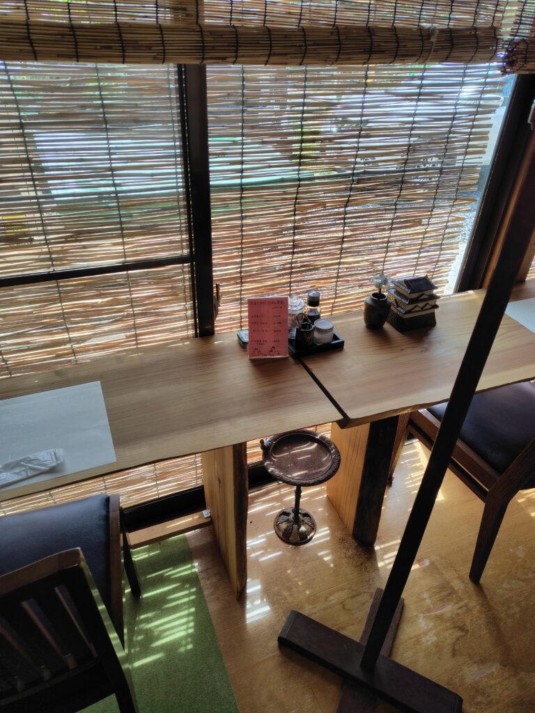 縁側の席からは外の様子も見れるので、鶏やヤギを見ながら食事をすることもできます。