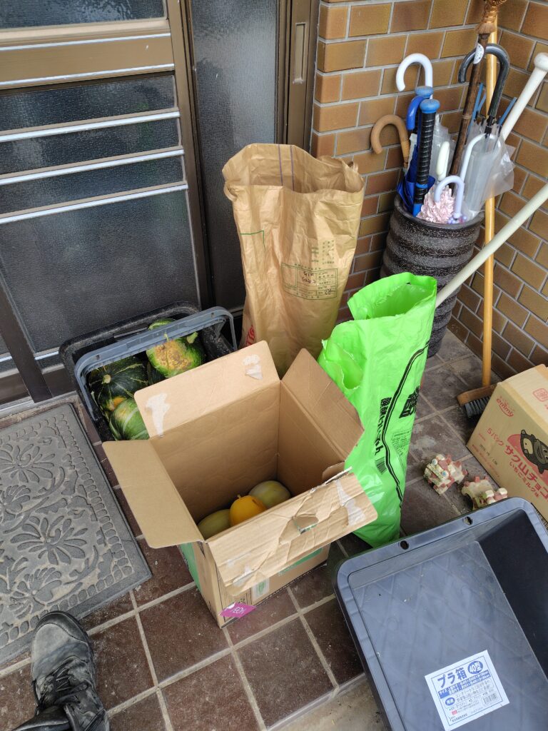 どうしたらそんなに出来るのか教えてほしくなるほど、段ボールや袋に入れて届けてくれます。お礼を言うだけでもらってていいのかと不安になるくらいの量でみんな喜んで食べさせてもらっています。家庭菜園で使ったブタの堆肥も恐らく発育にはプラスになるので、今後はもっと活用できるように簡単でうまく堆肥にできる方法を模索したいと思います。