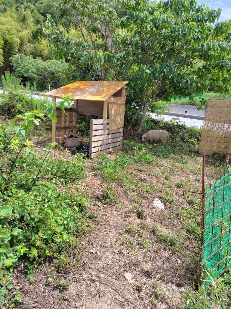 ブタについても自分たちで涼しい時をうまく見つけてくれるのですが、それでも逃げ場がなかったので日除けと、ブタとカバは実は一緒の生き物なのかと思うほど、水浴びは必須です。