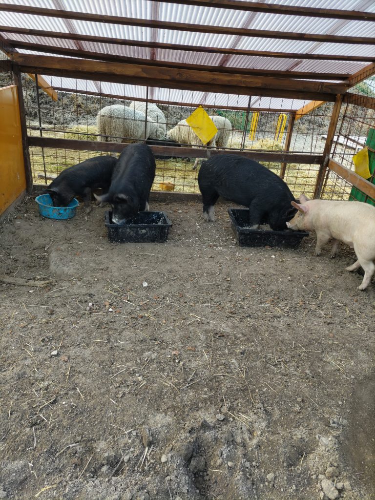 道路を通っていく人が結構見てくれますが、だいたい寝てるのかな?重なって寝ているブタはかわいく見えるので、おそらく評判は良さそうです(-ω-)/