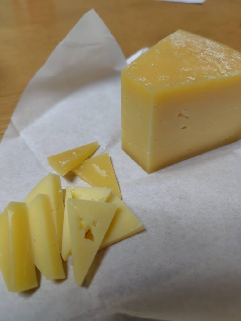 ヤギと牛のミルクの混ざったチーズは非常に食べやすくパクパクと切ったまま食べて止まらない問題が起きました。