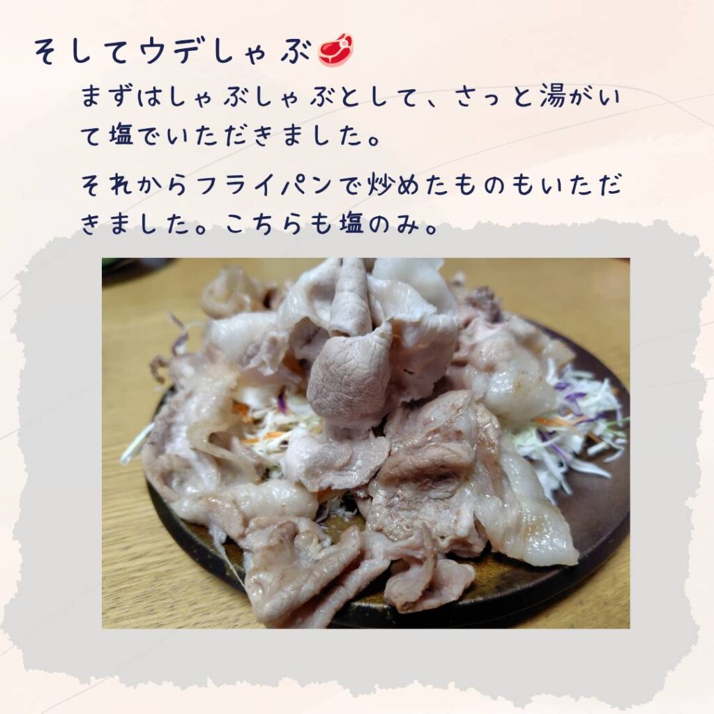 ウデ肉は筋が多いので基本的にはミンチになると養豚をしている方が教えてくれました。