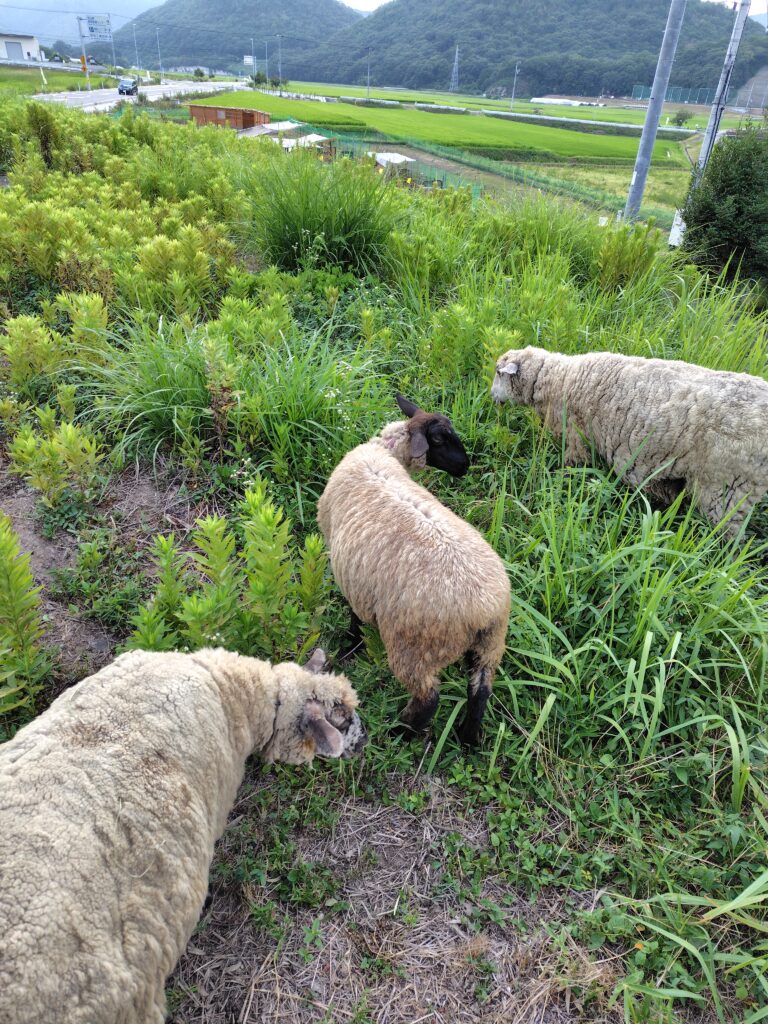 石毛おうち牧場です。雨マークが続いていて、3連休外出予定の人は困るかもしれませんが、地面が少し濡れるだけで気温がぐっと落ちますね。雑草にとっても嬉しい雨かもしれませんが、作物や動物にとってもありがたい雨となりました。そのおかげで羊も放牧地に出せたので、生草祭りをしています!(^^)!