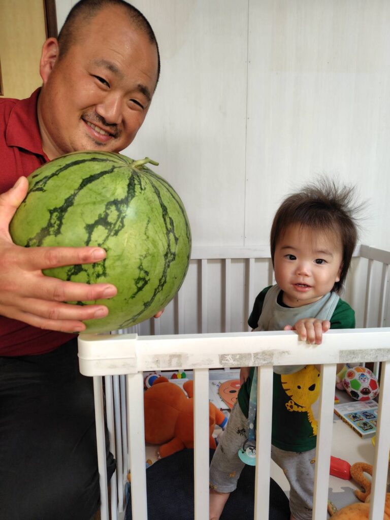 これはブタ用にと言って持って来てくれたのですが、家庭菜園のスイカがダメだったので、僕が食べたいということで、2個とも人用にもらいました(; ・`д・´)