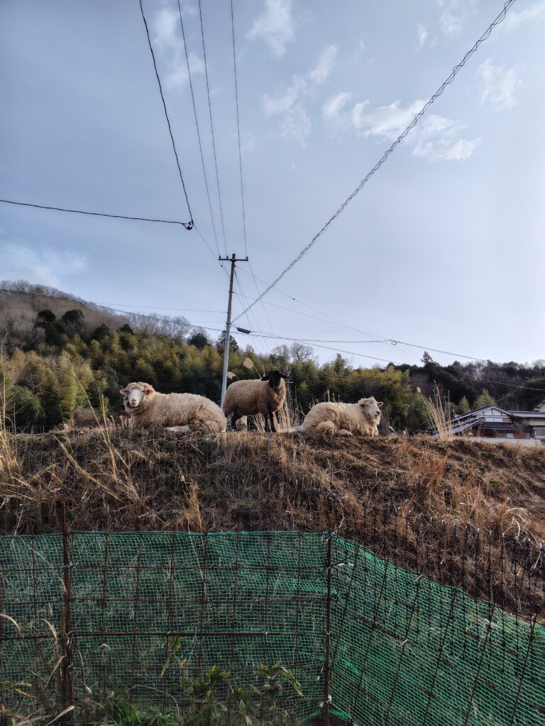 その後も揺れましたが、ちょうど外の様子を見ている時に揺れたのですが、ヒツジはあたふたしていました!
