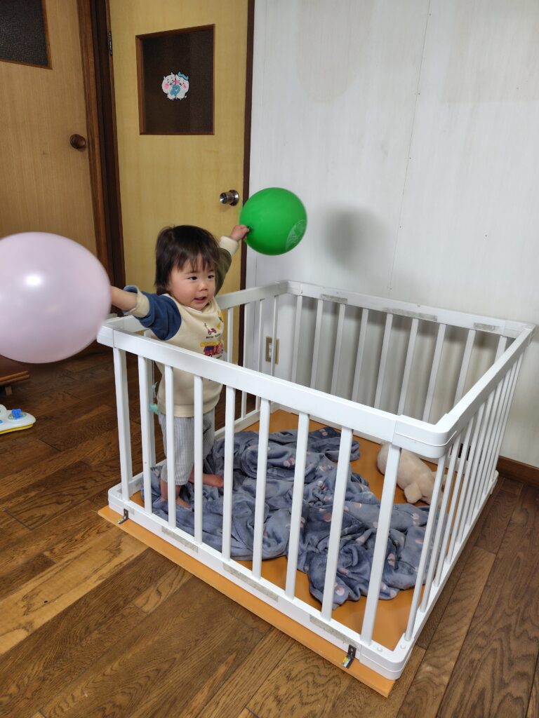 家には僕と暴れん坊将軍だけだったのでとりあえずベビーベッドの部屋に行き、家の中が安全か、うちの場合外の方が安全かなど考えているうちにおさまったので、とりあえずおむつを替えました。