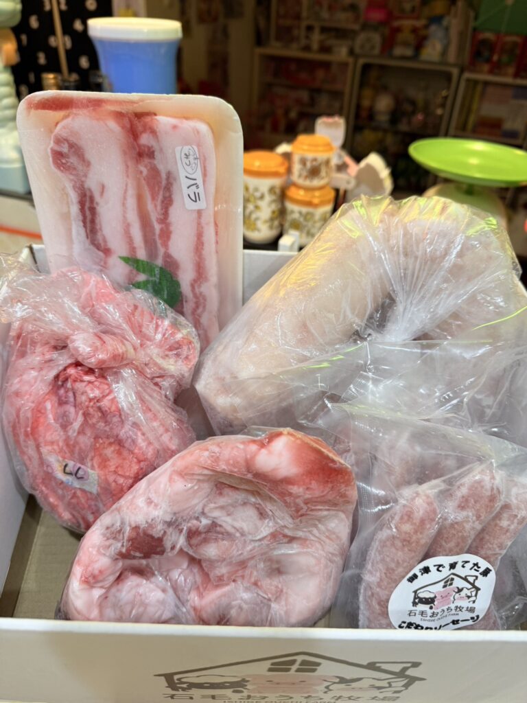 先日発送した商品が届いたよ~という報告を受けた時の写真です。豚足、フワ、ハラミというホルモンも含めて購入してくださいました。