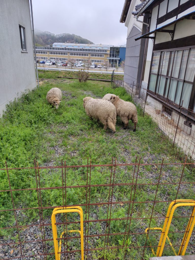 夕方にはほぼきれいになっていましたが、天気も悪かったのでそのまま朝までいてもらいました。柵などで囲う必要はあるのでどこでもできませんが、ヒツジの除草能力はなかなか見事です。全部食べ切っていないのでまた生えますが、見栄えはとてもいいです!(^^)!