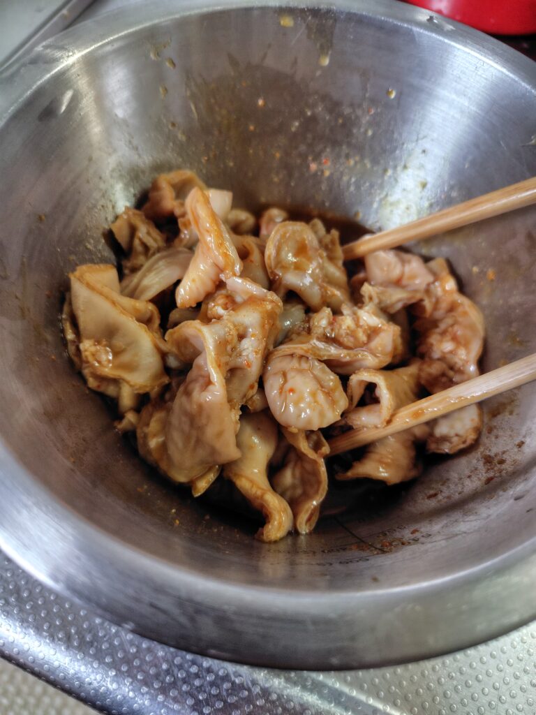 ということで昨日の日記にホルモンの話を書きましたが、昨日の夜大腸を使って料理をしました。
