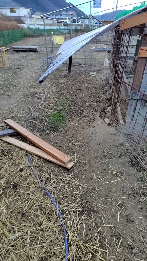 豚小屋のような大きなものは比較的綺麗な状態で、あと数年しっかりいけそうですが、パッと付け足した部分などはやはり弱いようです。
